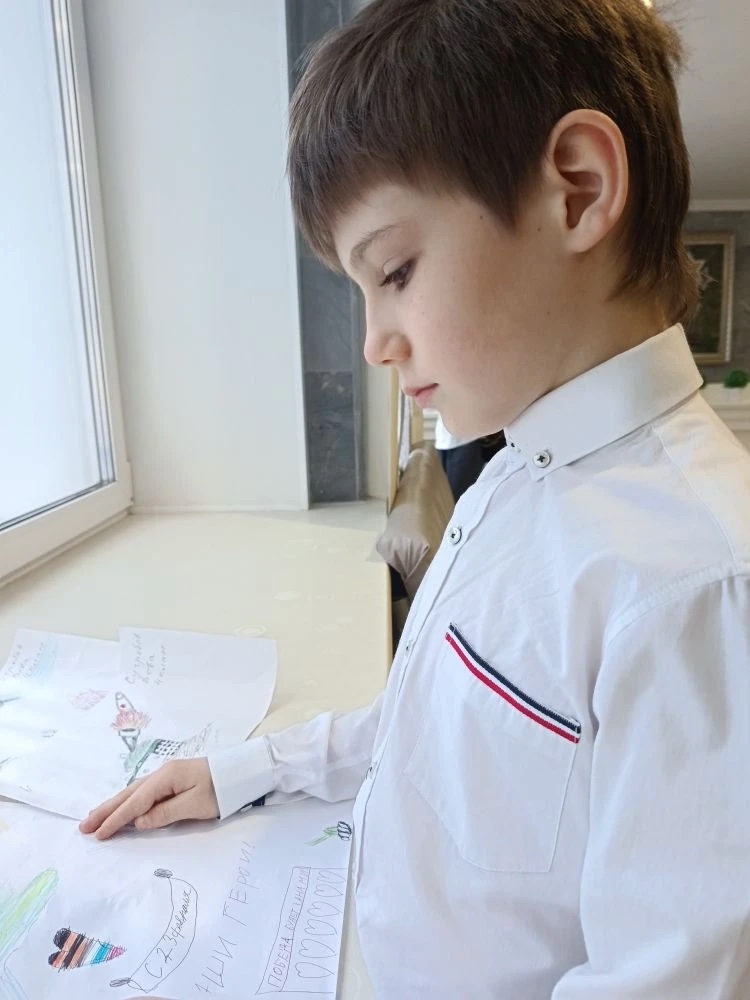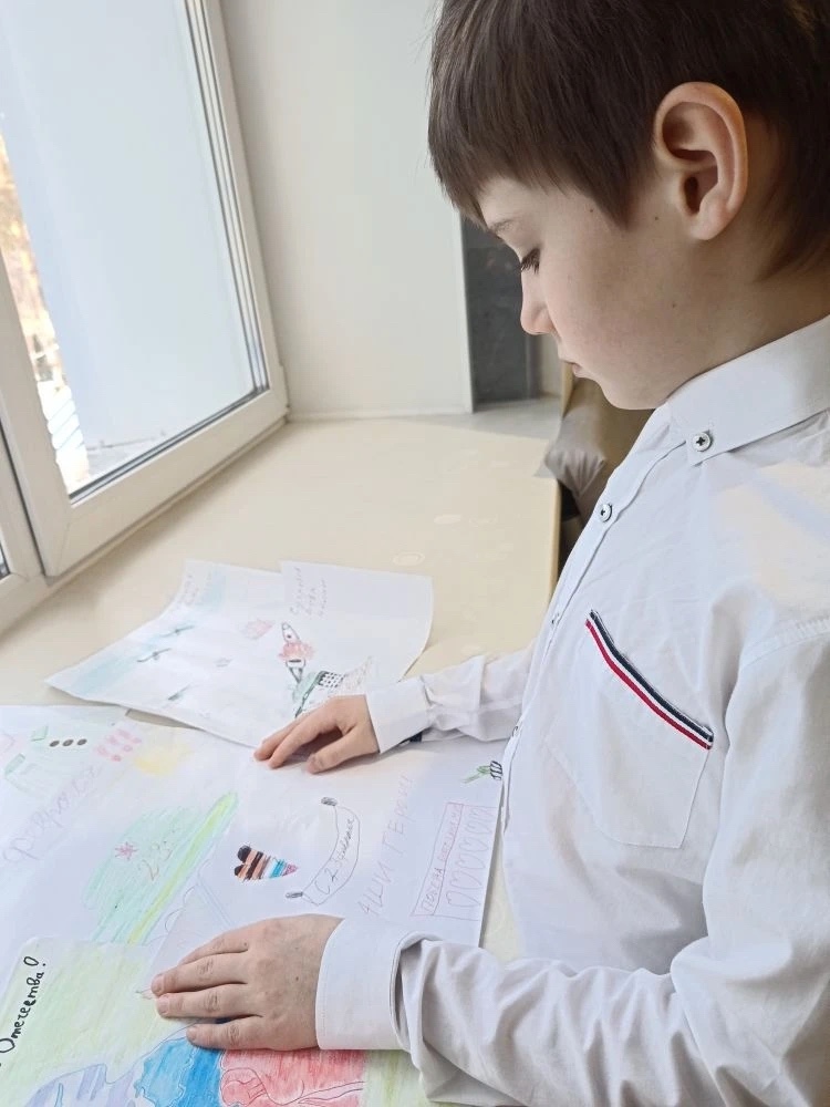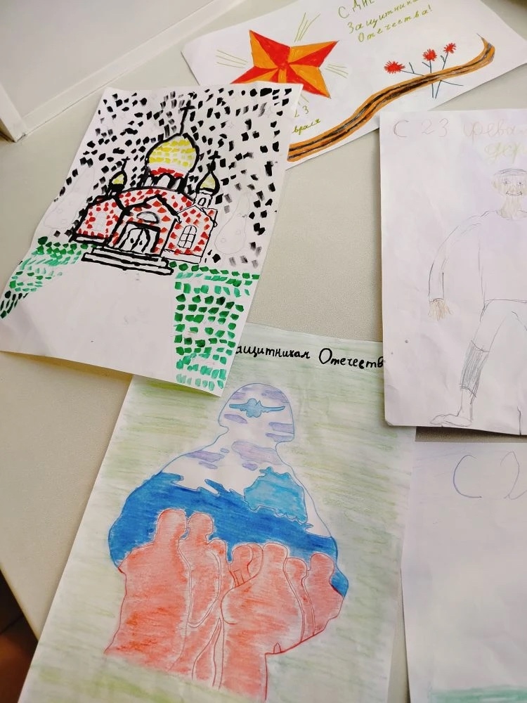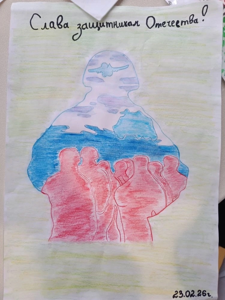 Отдельная часть, очень трогательная и честная, это рисунки на военно-патриотическую тему. Детские работы всегда говорят прямо. Там нет позы, нет игры в героизм, там есть уважение и вера. И именно поэтому эти рисунки воспринимаются иначе: как письмо, которое написано не рукой, а душой.